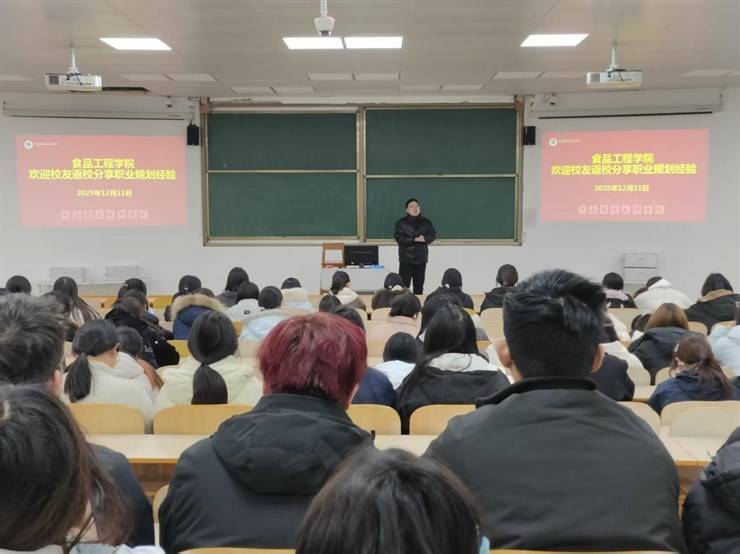 为帮助在校生明晰职业方向,破解就业迷茫,12月11日,食品工程学院在3212教室举办优秀校友职业规划经验分享会。活动邀请优秀校友李宇分享大学生职业规划经验,并与在校生面对面交流,传递行业前沿动态与职业成长经验。2025级173名大一新生参加分享会,活动由学院就业专干常宁博主持。