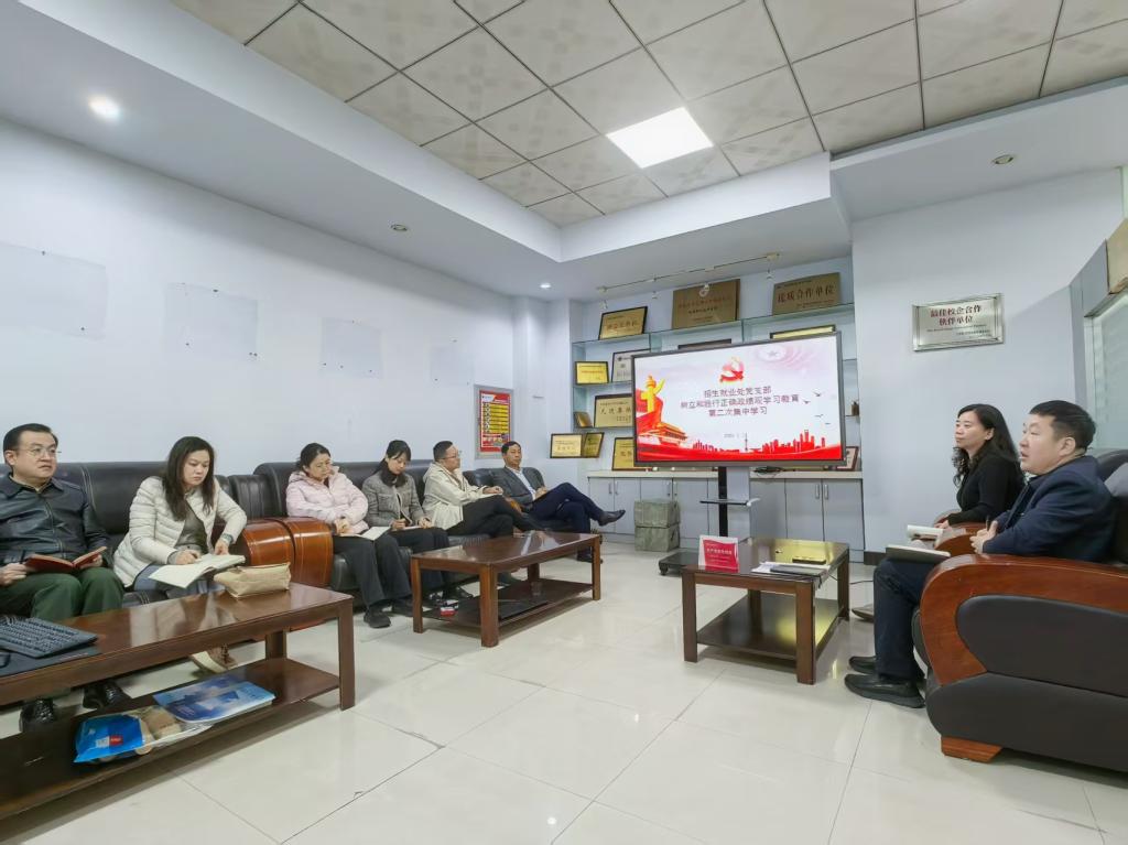 会议要求,支部全体党员、干部要把树立和践行正确政绩观学习教育作为首要政治任务,严格落实“三个结合”要求:坚持集中学习与自主学习相结合,持续深化理论武装;坚持理论学习与招生就业业务相结合,找准工作切入点和发力点;坚持深学细悟、真查实改相结合,扎实推进学习教育走深走实。要以此次学习为契机,进一步强化责任担当,把正确政绩观转化为推动工作的具体行动,聚焦招生就业重点工作,优化招生宣传、提升就业服务水平,让学习教育成果体现在招生就业工作的提质增效上。