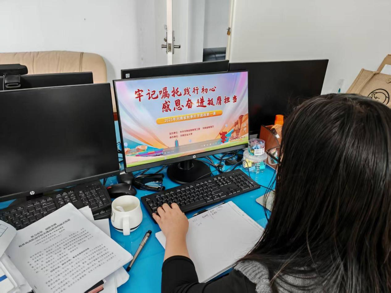 9月22日上午10时,以“牢记嘱托践行初心 感恩奋进挺膺担当”为主题的2025年河南省秋季开学思政第一课正式开讲。本次课程由中共河南省委教育工委、河南省教育厅主办,河南农业大学承办,招生就业处组织工作人员进行观看。本次思政第一课以“兴产·强农”“碧水·富民”“崇文·铸魂”三个篇章为核心内容,将习近平总书记的河南足迹与河南发展的生动答卷进行了鲜活展现,观看结束后,大家表示,将以此次思政学习为契机,把课程中蕴含的人才需求导向与价值引领理念融入招生就业工作全过程,进一步搭建校企对接桥梁,引导学生将个人职业规划与国家需求、河南发展相结合,助力更多学生在服务“兴产强农”“乡村振兴”等时代命题中实现青春价值。(撰稿:石国岩 审稿:刘蕤)